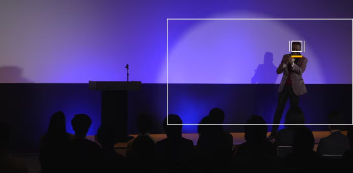 Cuando la función de encuadre automático está activada, la cámara sigue automáticamente al sujeto humano detectado y ajusta el encuadre para que el sujeto siempre ocupe un lugar destacado en la toma. Las tomas resultantes pueden parecer como si un operador humano hubiera ajustado manualmente el encuadre durante toda la grabación, aunque en realidad la cámara haya permanecido inmóvil todo el tiempo. Los operadores que trabajan solos pueden concentrarse en la entrevista con el entrevistado sin tener que estar constantemente controlando la posición de la cámara.