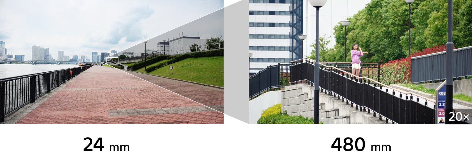 xEl exclusivo y excelente objetivo G Lens™ con zoom de 20 aumentos cubre todo, desde entrevistas en gran angular en el coche hasta tomas detalladas con teleobjetivo en eventos deportivos. Ofrece un rango de zoom óptico de 24-480 mm (equivalente a 35 mm en formato completo) y cuenta con la tecnología Clear Image Zoom de Sony, que añade la posibilidad de alcanzar un zoom de 30x al grabar en 4K o de 40x en resolución FHD. Además, puedes aprovechar las aperturas máximas de F2,8 (gran angular) y F4,5 (teleobjetivo) mientras realizas el zoom de forma rápida, fluida y silenciosa.