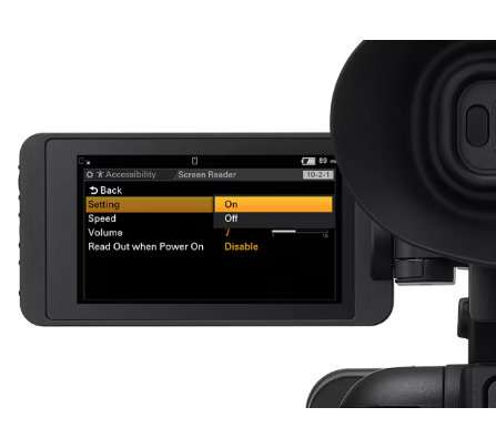 La función de lector de pantalla* permite que las pantallas de los menús se lean en voz alta con el volumen y la velocidad de lectura seleccionados por el usuario. La función de lupa de pantalla amplía el tamaño de las pantallas de grabación, reproducción y menú con el nivel de ampliación seleccionado por el usuario.