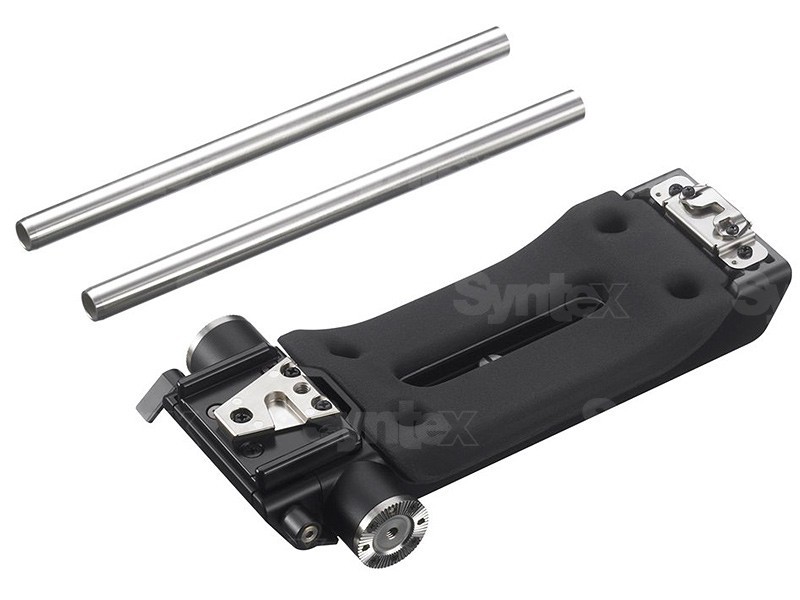 El Sony VCT-FSA5 es un soporte de hombro que permite acoplar otros accesorios. Está especialmente diseñada para el estilo de rodaje documental con las cámaras PMW-F55 y PMW-F5. Incluye dos varillas de 15 mm de diámetro, dos placas compatibles con accesorios Arri y una preparación para la placa de fijación rápida Sony VCT-14. Gracias a su diseño minimalista con un centro óptico bajo y un mecanismo de equilibrio de peso, permite un manejo cómodo de la cámara: permite ajustar la posición de la cámara para equilibrar el peso en función del objetivo.
