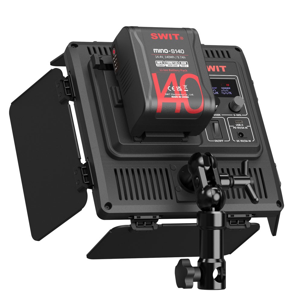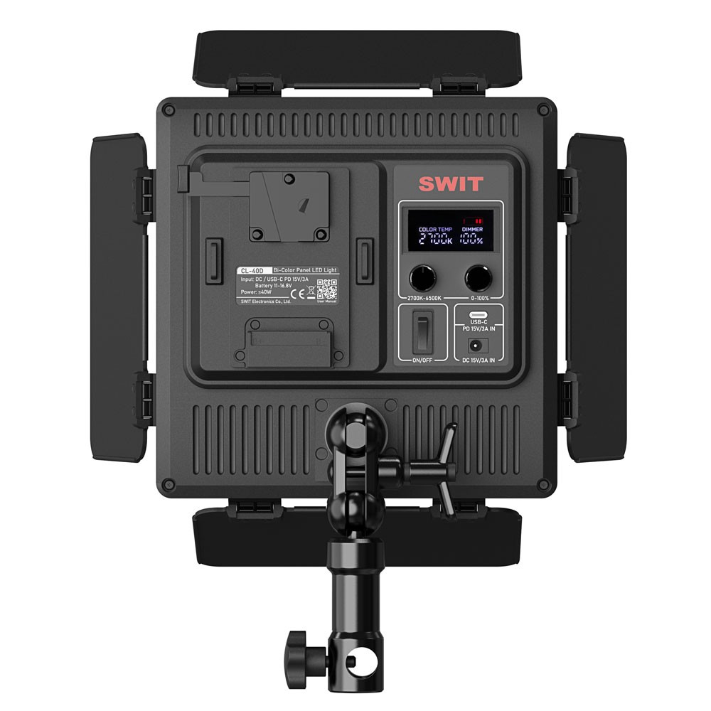 Para un ajuste cómodo, el CL-40D admite varias fuentes de alimentación: batería V-mount, USB-C y 15 V CC. El paquete incluye un adaptador CA-CC.