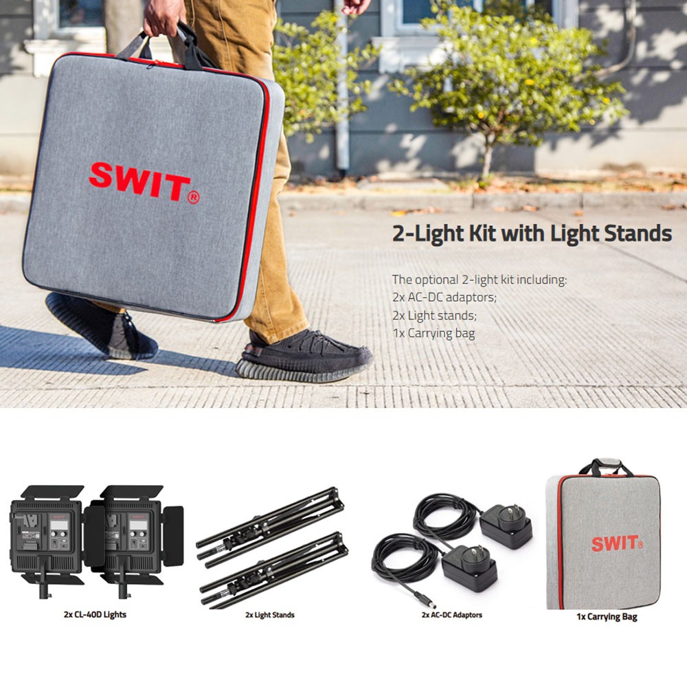SWIT CL-40D 2KIT – 2 unidades CL-40D con 2 luces de panel bicolores de 40 W, de gran luminosidad, ultraportátiles, fácilmente ajustables y sin ventilador, junto con sus trípodes