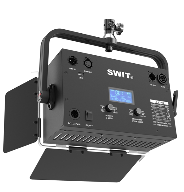 El SWIT CL-M100D es un minipanel LED SMD bicolor de 100 W con una potencia de 3400 luxes por metro, temperatura de color ajustable entre 2700 K y 6500 K, CRI 98 / TLCI 99 y un funcionamiento silencioso sin ventilador. Gracias a su diseño compacto, con un tamaño reducido a la mitad, es ideal para estudios de televisión, actuaciones en directo, teatros y estudios de cine con techos bajos.