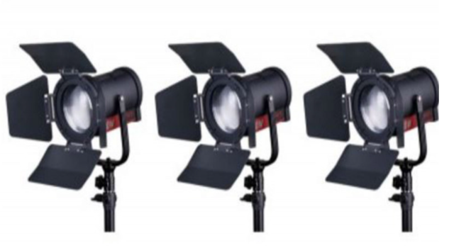 Otras características incluyen el modo silencioso de apagado del ventilador, protección de los LED contra el sobrecalentamiento, aletas metálicas de cuatro hojas resistentes y un soporte de montaje robusto en forma de U. Este conjunto de 3 luces es ideal para entrevistas, configuraciones de iluminación principal/auxiliar/de fondo y grabaciones profesionales in situ.