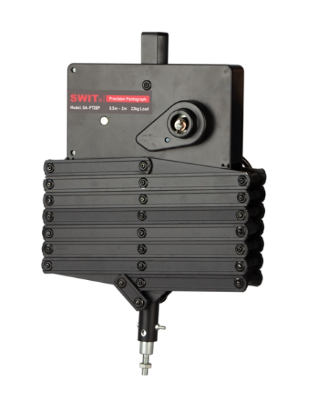 El pantógrafo de posicionamiento preciso SWIT GA-PT20P está diseñado para estudios profesionales y producciones sobre el terreno, y ofrece un control preciso de la posición y la orientación de los dispositivos de iluminación. El GA-PT20P está fabricado en una resistente aleación de aluminio y puede soportar dispositivos de iluminación de hasta 23 kg, lo que garantiza la estabilidad y la seguridad durante su funcionamiento.