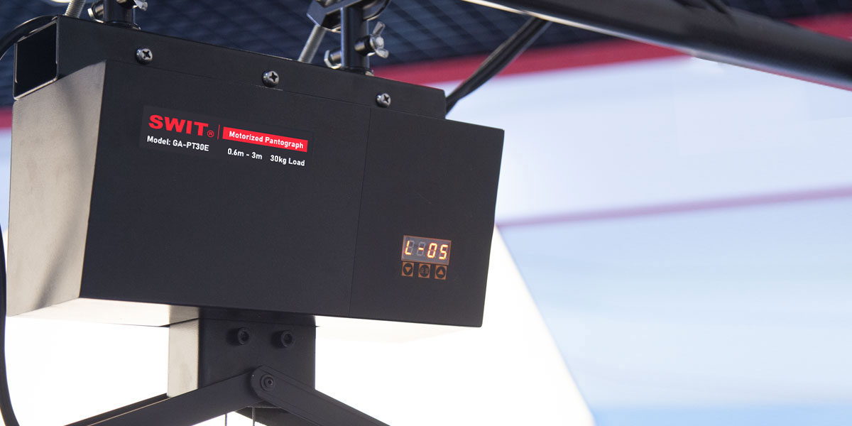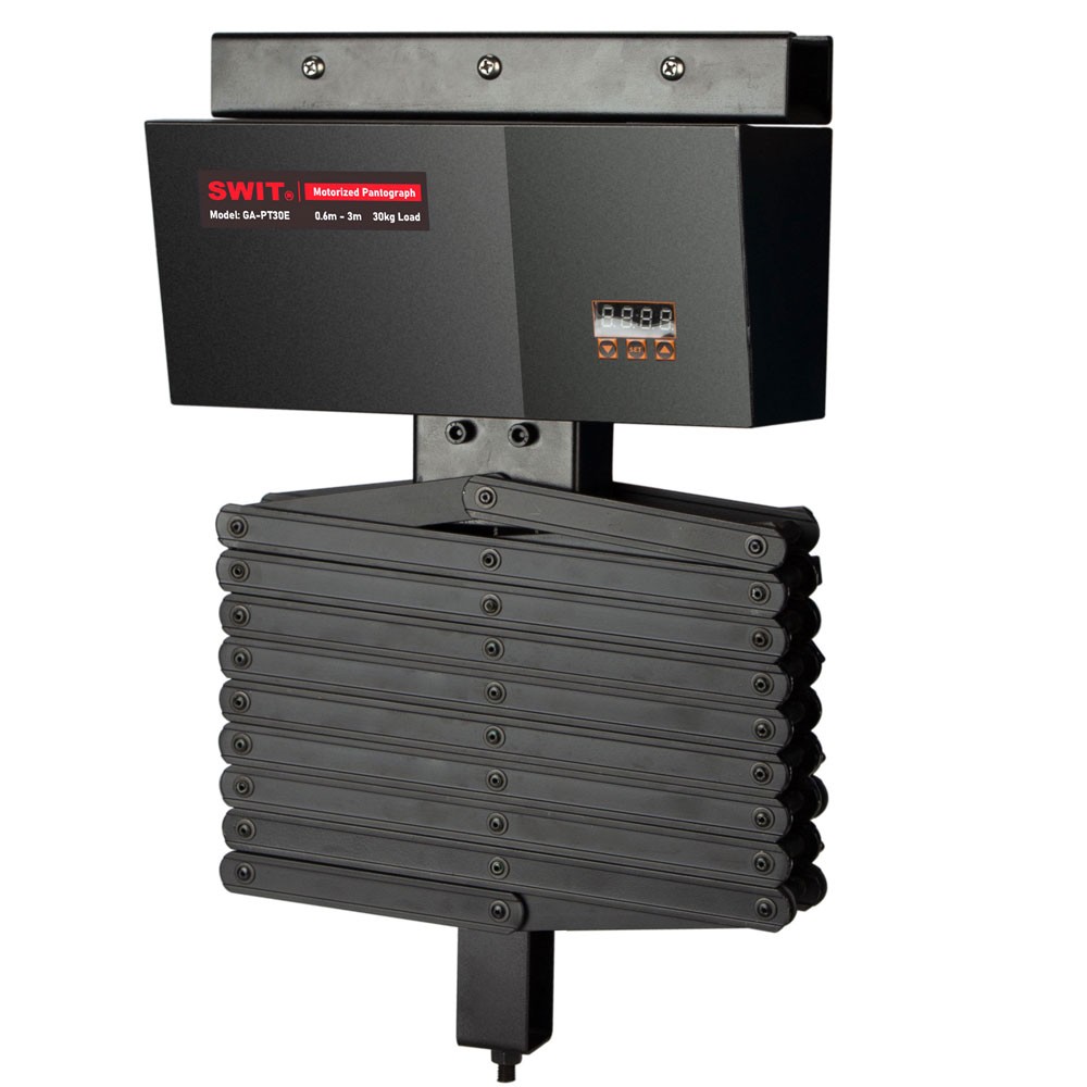 El pantógrafo GA-PT30E es un sistema de soporte de techo que ofrece control motorizado DMX para subir y bajar las luces de estudio, con una velocidad de 10 cm/s. Los estudios de vídeo profesionales pueden ajustar la altura de las luces mediante una consola DMX; la longitud de extensión es de 0,5 m a 2 m, con una carga máxima de 30 kg.