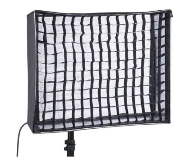 El difusor suaviza la salida de los LED y crea una iluminación favorecedora y uniforme que reduce las sombras marcadas y los reflejos, lo que lo hace ideal para entrevistas, retratos, retransmisiones y producciones de estudio. El paquete incluye una rejilla tipo «egg crate» (rejilla de tela) que reduce la anchura del haz, minimiza la dispersión de la luz y permite un mejor control de la dirección de la iluminación.