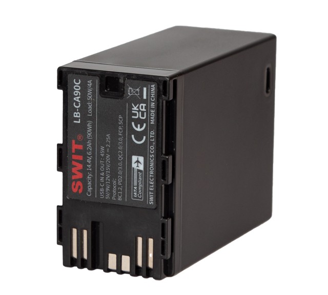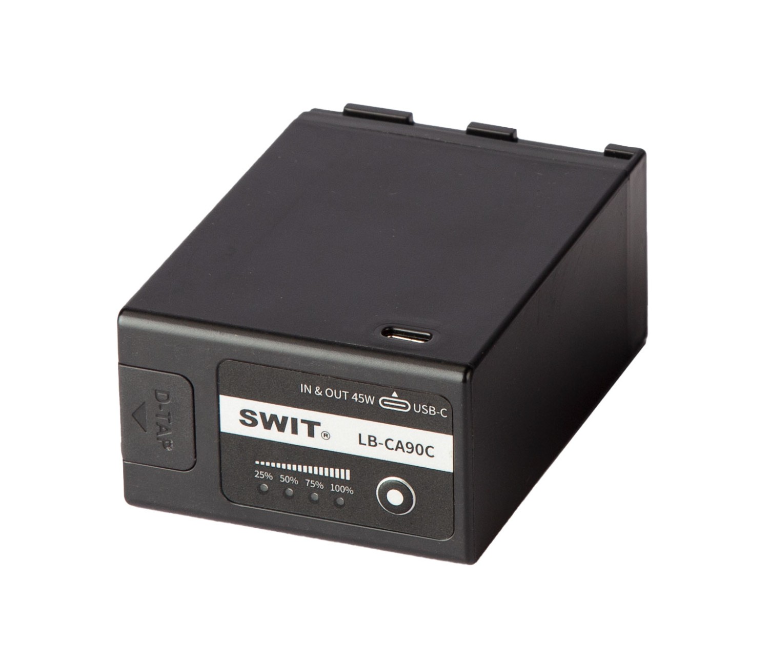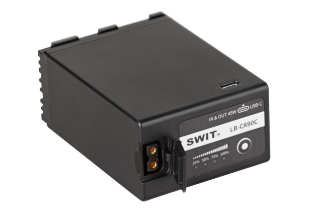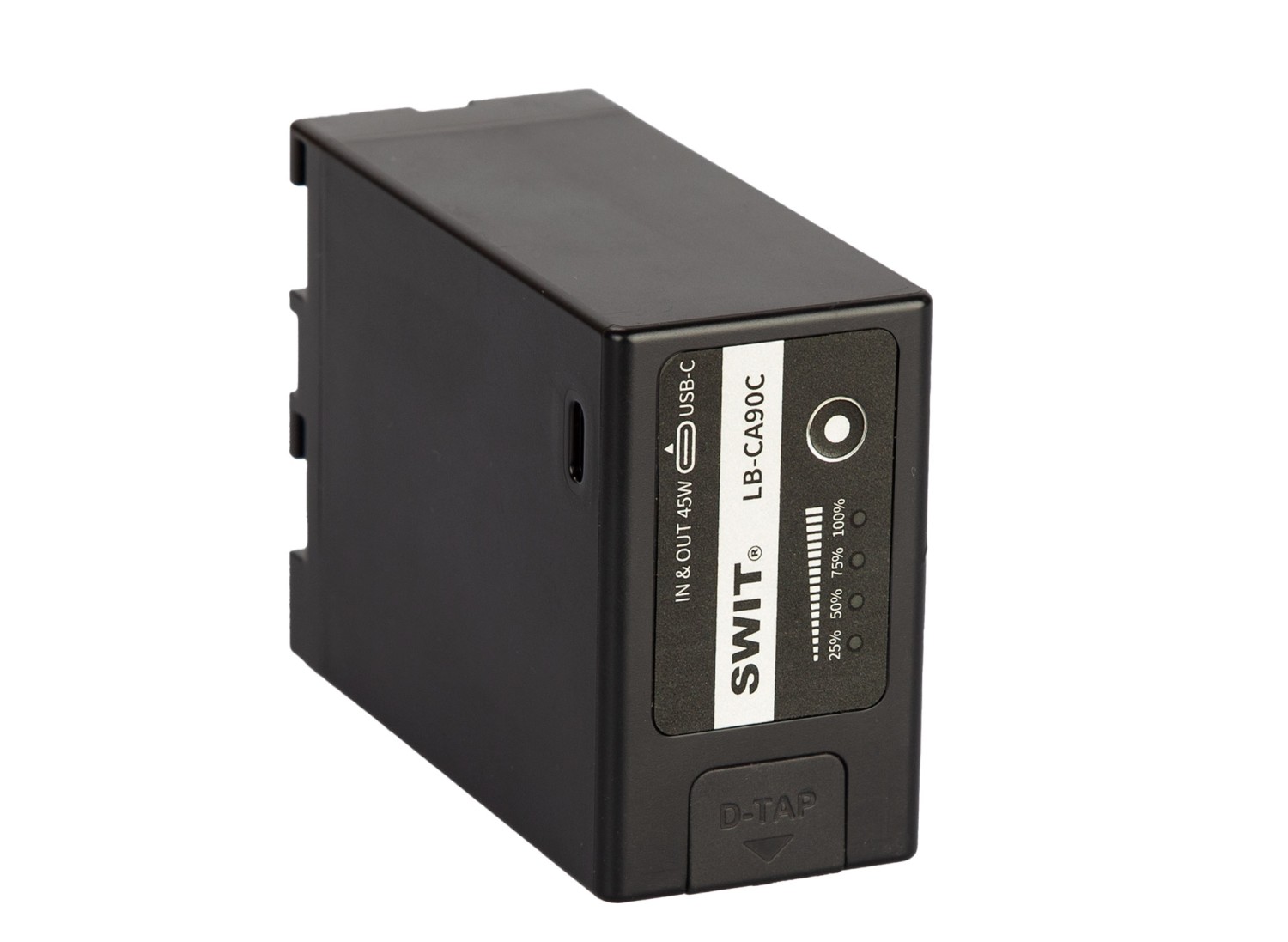 La LB-CA90C es una batería Canon BP-A de gran capacidad con salida D-Tap y entrada/salida USB-C de 45 W para las cámaras Canon EOS C70, C200, C300MK2, C500MK2, XF605 y XF705.
