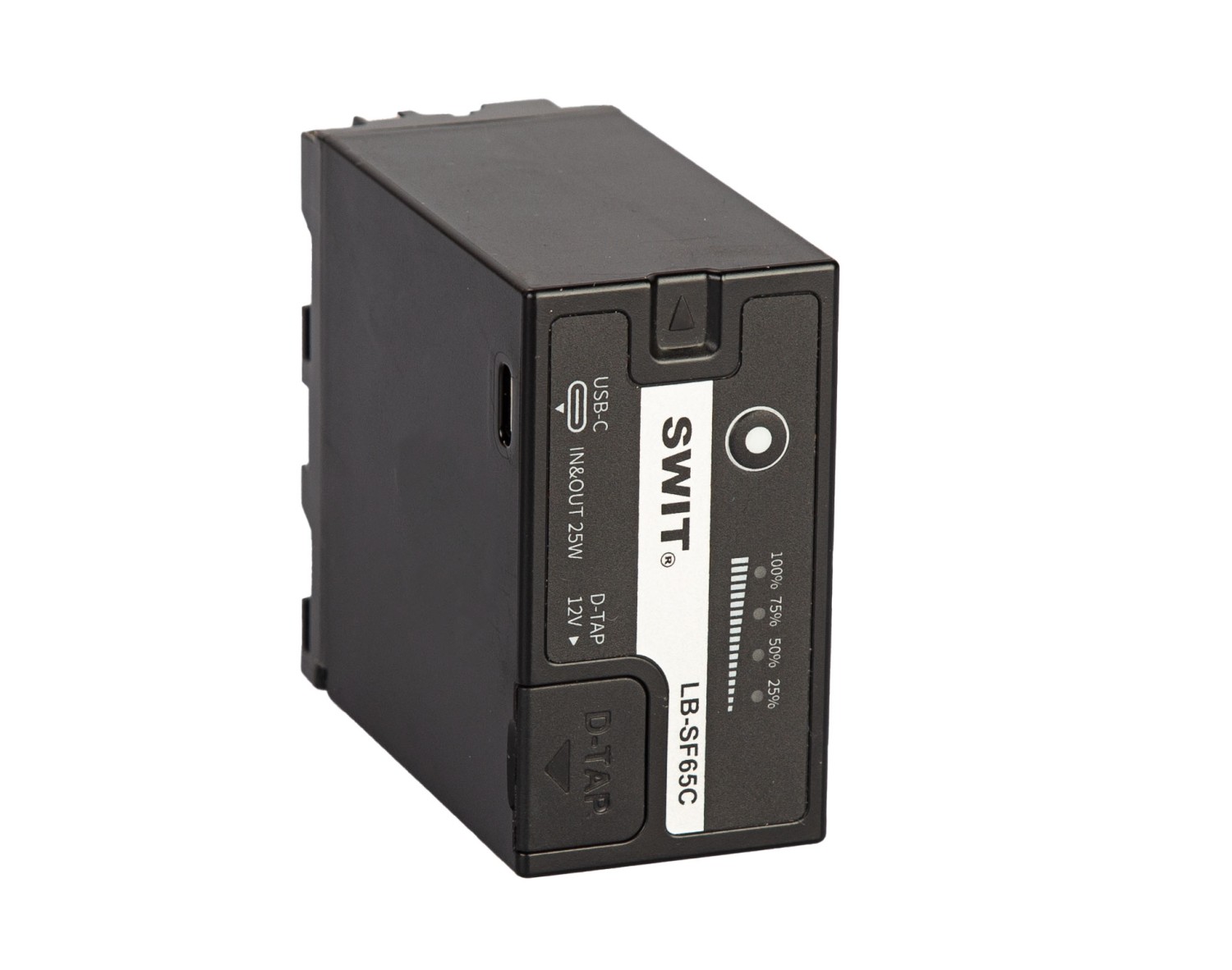 La SWIT LB‑SF65C es una batería NP‑F de 65 Wh para videocámaras digitales con una tensión nominal de 7,2 V, que ofrece una salida regulada D‑tap de 12 V y una entrada/salida USB‑C con una potencia de 25 W para alimentar una amplia gama de equipos de vídeo profesionales y accesorios. Proporciona una salida de hasta 30 W/4 A, admite carga rápida a través de USB-C (carga completa en aproximadamente 3,5 horas) y también se puede cargar con cargadores NP-F estándar, lo que la convierte en una fuente de alimentación flexible para monitores, luces, grabadoras y otros equipos de campo . Aviso: esta batería no se puede utilizar para alimentar cámaras Sony.