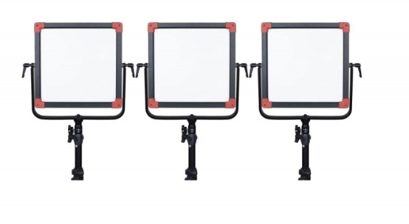 Cada panel se alimenta mediante baterías V-mount o Gold-mount con entrada de 11-36 V CC o mediante adaptadores de CA, y cuenta con una robusta estructura totalmente metálica con soportes en forma de U. El kit se suministra con tres trípodes, tres adaptadores de CA-CC y un carro para facilitar su transporte, lo que lo convierte en una solución de iluminación portátil completa.