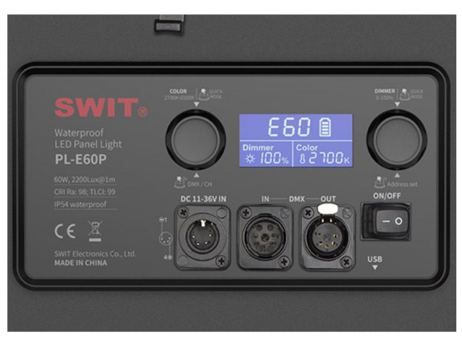 El SWIT PL-E60P es un panel LED bicolor ultradelgado e impermeable de 60 W que ofrece una precisión cromática excepcional (CRI 98, TLCI 99) con un rango variable de 2700 K a 6500 K. Está diseñado para su uso tanto en estudio como en exteriores y ofrece una regulación continua del 0 al 100 %, compatibilidad con baterías V-mount, control DMX y un amplio ángulo de emisión de 70° para una iluminación suave y uniforme.