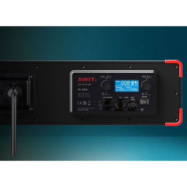 La PL-E90L cuenta con diodos LED SMD montados en los laterales, en el borde interior del marco, y gracias a la innovadora placa reflectora SWIT con puntos láser de 90°, la salida de luz es un haz altamente eficiente, brillante, suave y uniforme que envuelve los objetos. El montaje lateral de los LED reduce considerablemente el grosor de la linterna. Mide solo 21 mm, es delgada y portátil para su uso sobre el terreno.