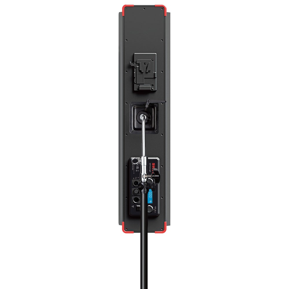 El panel de control trasero admite entrada y salida DMX512, salida de alimentación USB para el adaptador DMX inalámbrico y una amplia entrada de CC de 11-36 V. La pantalla LCD muestra el nivel de atenuación, la temperatura de color, la dirección DMX y el estado de la alimentación.