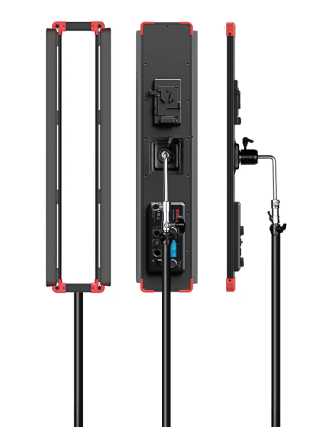 El modelo PL-E90LH está diseñado para un control profesional, es compatible con DMX512 e incluye una salida USB para conectar un receptor DMX inalámbrico. La pantalla LCD integrada muestra la temperatura de color, el nivel de atenuación, la dirección DMX y el estado de la batería. Las opciones de alimentación incluyen un amplio rango de entrada de CC (11-36 V) y compatibilidad con baterías V-Mount o Gold Mount. Los diafragmas integrados permiten modelar la luz con precisión y controlar la dispersión.