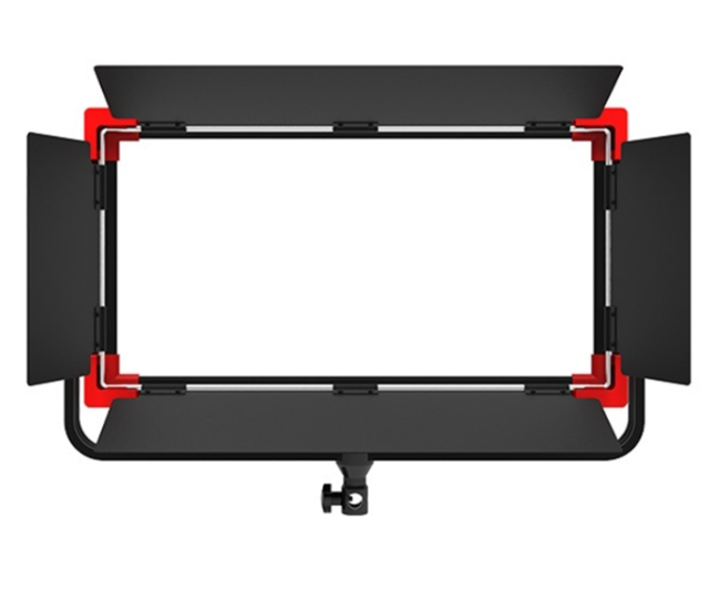 Incluye barn doors metálicos de 4 hojas y soporte tipo yoke