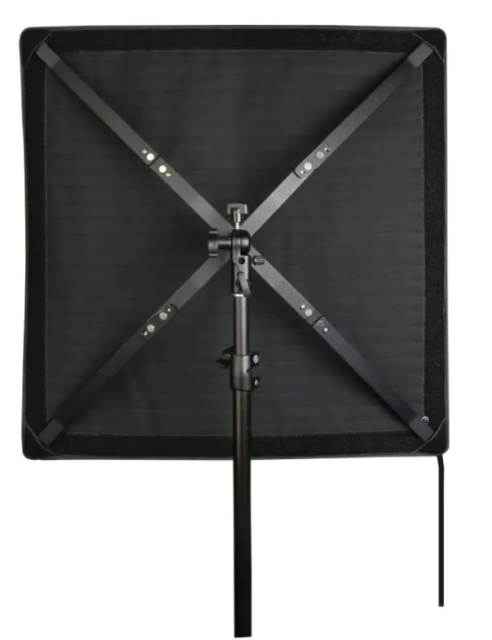 El S-2630 requiere un controlador independiente con pantalla LCD táctil y puede alimentarse mediante baterías de CC o V-mount (entrada de 11–17 V). El panel está equipado con un tejido impermeable para uso en exteriores y un soporte X portátil para montarlo en un trípode o equipo de iluminación, lo que lo hace extremadamente versátil para la producción sobre el terreno.