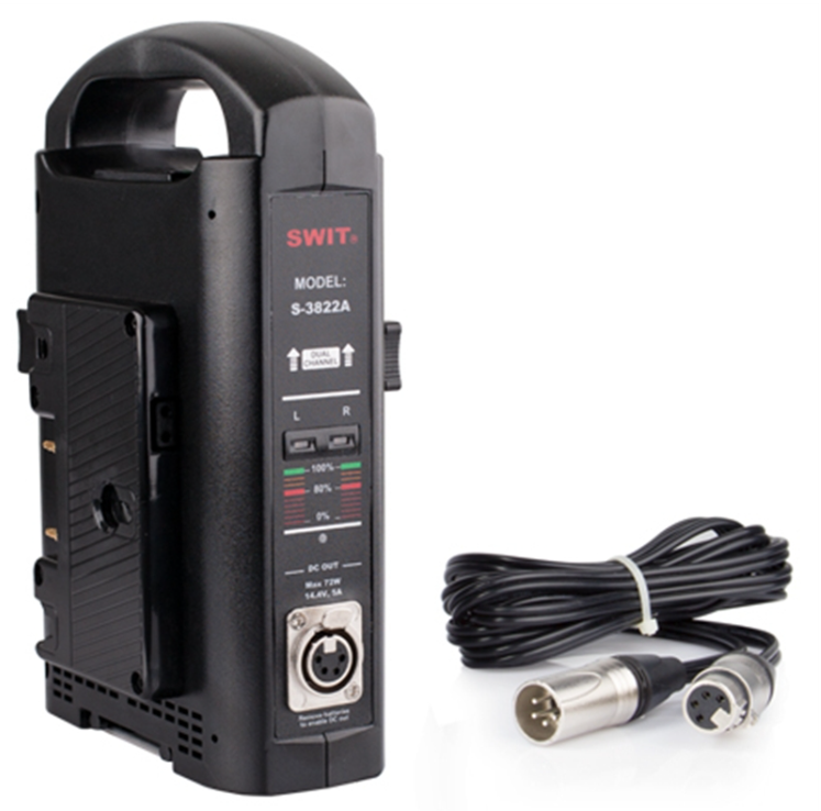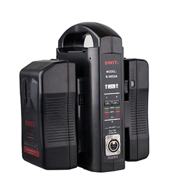 El SWIT S-3822A es un cargador de baterías Gold Mount ligero y portátil de dos canales, capaz de cargar dos baterías a la vez con una salida estable de 16,8 V. Es ideal para su uso en retransmisiones y producciones sobre el terreno.