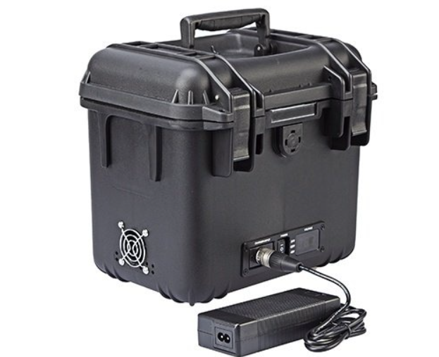 La caja S-4040, diseñada para maximizar el tiempo de funcionamiento y la estabilidad de la salida, proporciona una tensión regulada de 24 V CC (hasta 10 A, 240 W) a través de una salida XLR de 4 pines y una tensión regulada de 48 V CC (hasta 10 A, 480 W) a través de una salida XLR de 3 pines. La salida de 48 V requiere cuatro baterías idénticas para su funcionamiento, mientras que la salida de 24 V puede funcionar con cualquier número de baterías instaladas. La pantalla LED muestra el voltaje medio de las baterías instaladas, proporciona información sobre el estado de las baterías en tiempo real y avisa cuando es necesario recargar o sustituir las baterías.