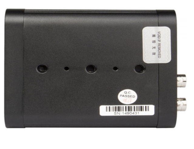 El dispositivo está diseñado pensando en la resistencia y está encerrado en una carcasa protectora robusta que protege los conectores BNC. Varios orificios roscados en la parte inferior ofrecen opciones de montaje flexibles para equipos de cámara, unidades móviles de retransmisión o instalaciones de estudio.