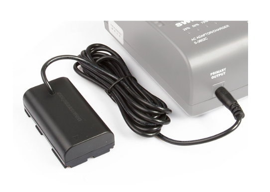 El SWIT S-7500E es un adaptador para una batería falsa tipo Canon LP-E6 con un cable