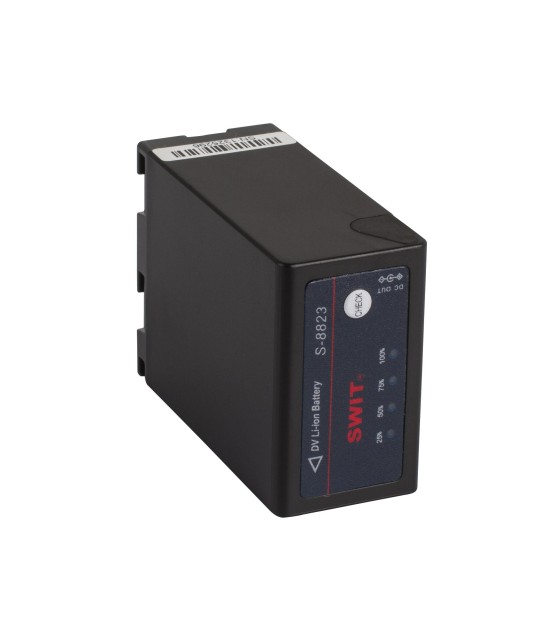 La S-8823 es una batería de repuesto para la JVC BN-VF823, compatible con las videocámaras JVC de la serie GY-HM100/101. La S-8823 puede intercambiar información digital con las cámaras y mostrar el nivel de batería restante en el visor.