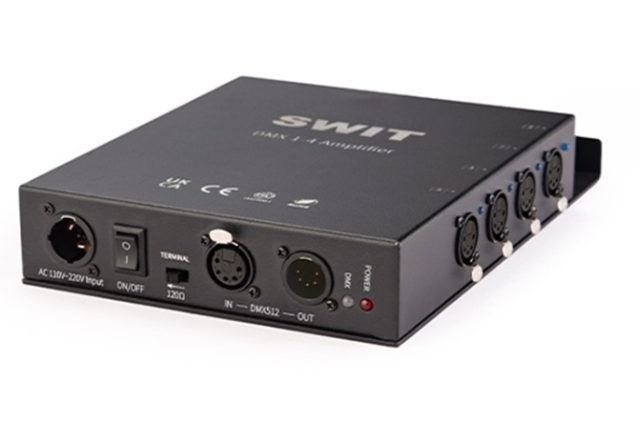 El SWIT SA-D34 es un convertidor y amplificador de señal DMX512 de 4 canales, diseñado para garantizar un control estable y sin interferencias de la iluminación en estudios profesionales, salas de retransmisión en directo y estudios virtuales.