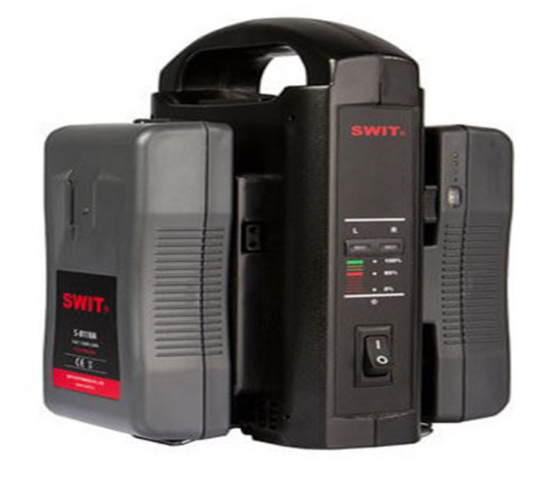 La SWIT S-4030 es una estación de alimentación de 4 baterías con montura en V que