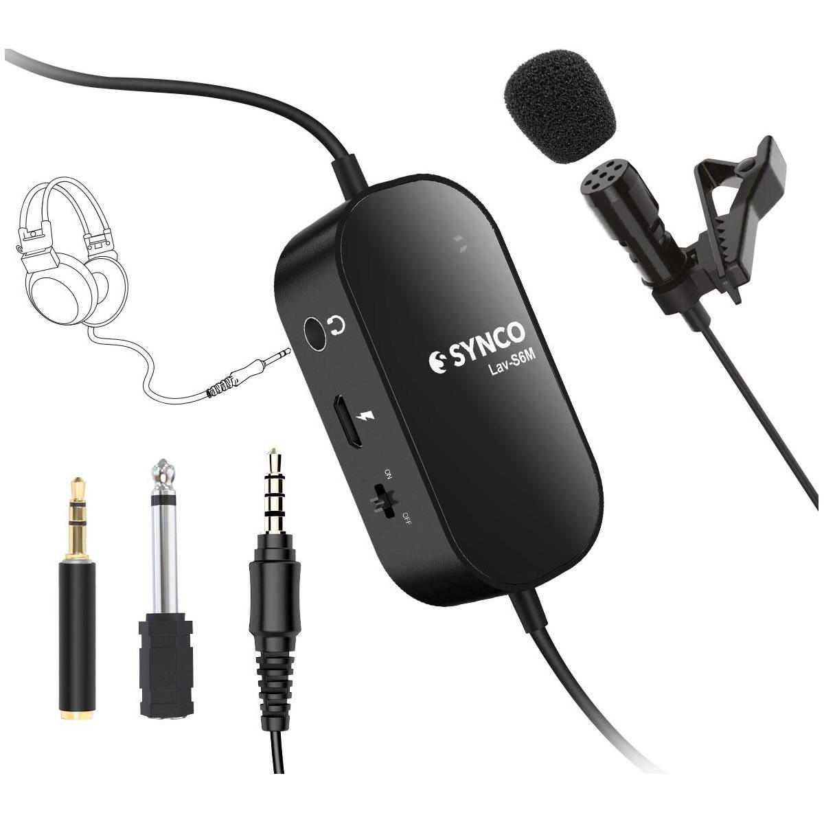 Versión del micrófono de solapa Synco Lav-S6 equipada con una caja de salida Real-Time Audio Monitoring System con salida para auriculares, tecnología CVC para la reducción de ruido y carga USB. Se suministra con un cable de 6 m y se alimenta mediante una batería interna de 500 mAh (10-12 h). Característica omnidireccional, relación señal/ruido de 75 dB, impedancia de salida de 1000 Ω, sensibilidad de -30 dB a 1 kHz, rango de frecuencia de 20 Hz a 19 kHz. Salida TRS/TRRS de 3,5 mm.