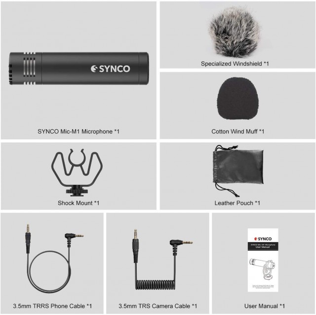 Este micrófono de cámara cardioide de electreto especializado para DSLR/DSLM ofrece una salida TRS/TRRS de 3,5 mm, un soporte amortiguado con zapata para flash y unas dimensiones miniaturizadas de 22 x 81 mm, ¡con un peso de tan solo 26 g! Relación señal/ruido de 76 dB, sensibilidad de -42 dB a 1 kHz.