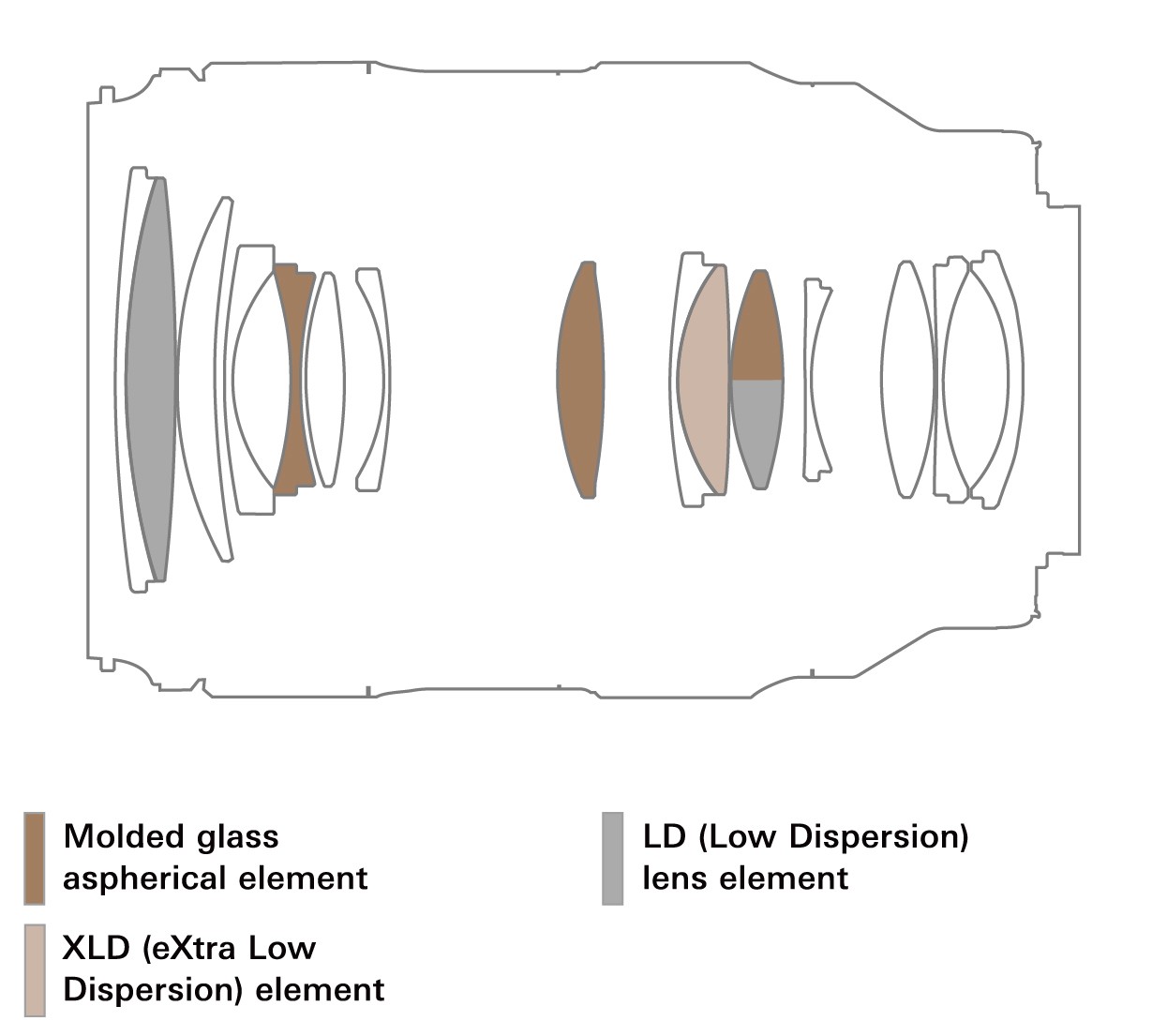 La aberración cromática es un defecto frecuente en la óptica, que se manifiesta de muchas formas. A menudo hablamos de la denominada aberración cromática, que se da con mayor frecuencia en los objetivos gran angulares. Los elementos LD están fabricados con cristales ópticos especiales con una dispersión de la luz extremadamente baja, que compensan eficazmente el defecto cromático, especialmente perceptible al utilizar teleobjetivos en su posición máxima.