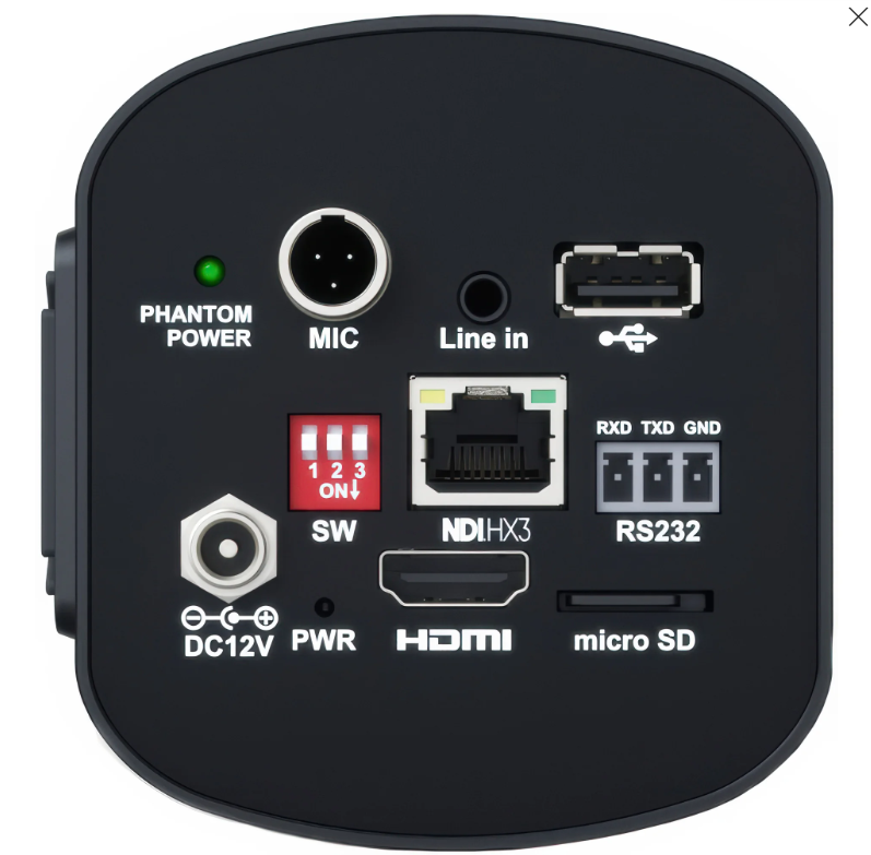 • Salida de vídeo: NDI® HX3, HDMI 2.0, USB 2.0 (formatos NV12, YUYV, MJPG)