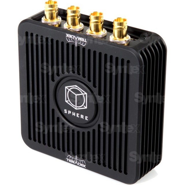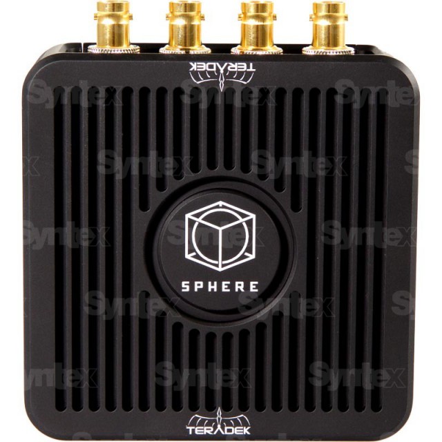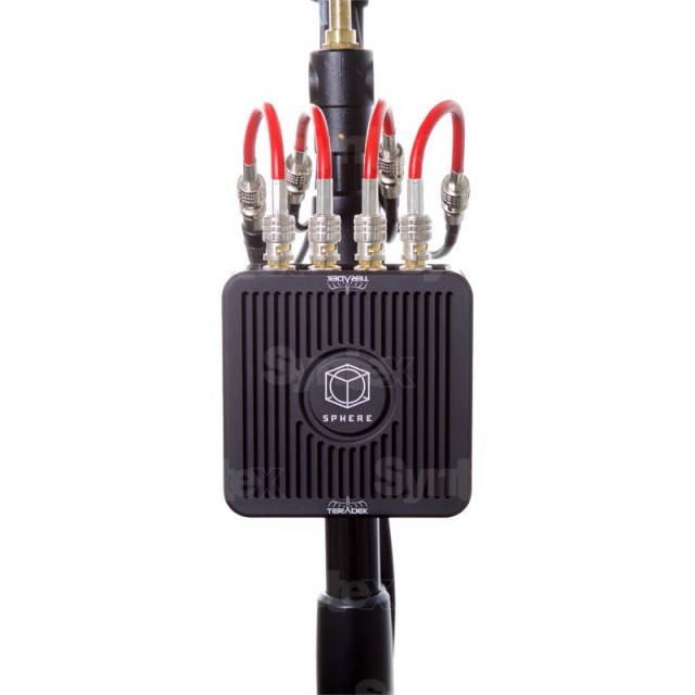 Teradek Sphere es una solución de monitorización y retransmisión en tiempo real para producciones de 360° con múltiples cámaras. La cámara Sphere, compatible con casi cualquier cámara SDI, recibe hasta cuatro señales de salida de cámara con una resolución de hasta 1080p a 30 fotogramas por segundo y combina los archivos de vídeo para su visualización en directo en dispositivos iOS.