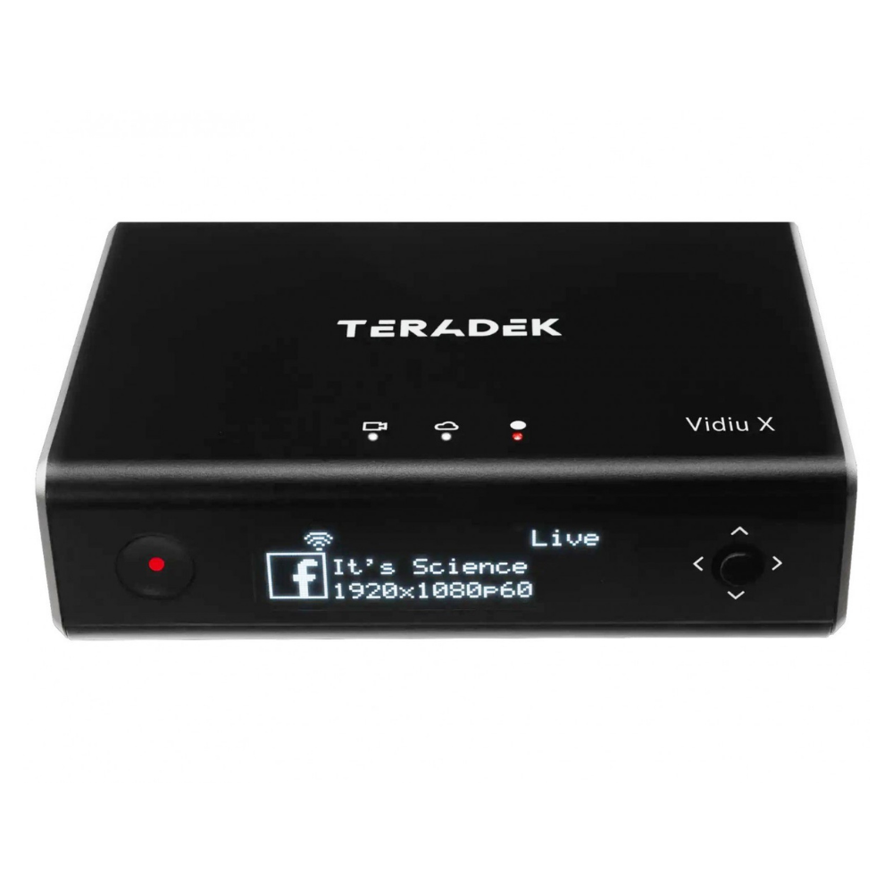 Codificador de streaming de vídeo HD compacto y asequible. ¡Transmite en 1080p AVC/H.264 (hasta 15 Mb/s) desde cualquier lugar, de forma fácil y rápida! El modelo VidiU X cuenta con entradas y salidas HDMI y es compatible con las plataformas Facebook Live, YouTube Live y el protocolo RTMP(S). En comparación con el producto Vidiu Go, no ofrece compatibilidad con HEVC, batería interna de iones de litio ni entrada 3G-SDI, pero además (además de un precio considerablemente más bajo) incluye salida HDMI y compatibilidad con Wi-Fi 6 (802.11ax). A la venta a partir del 2 de marzo de 2021.
