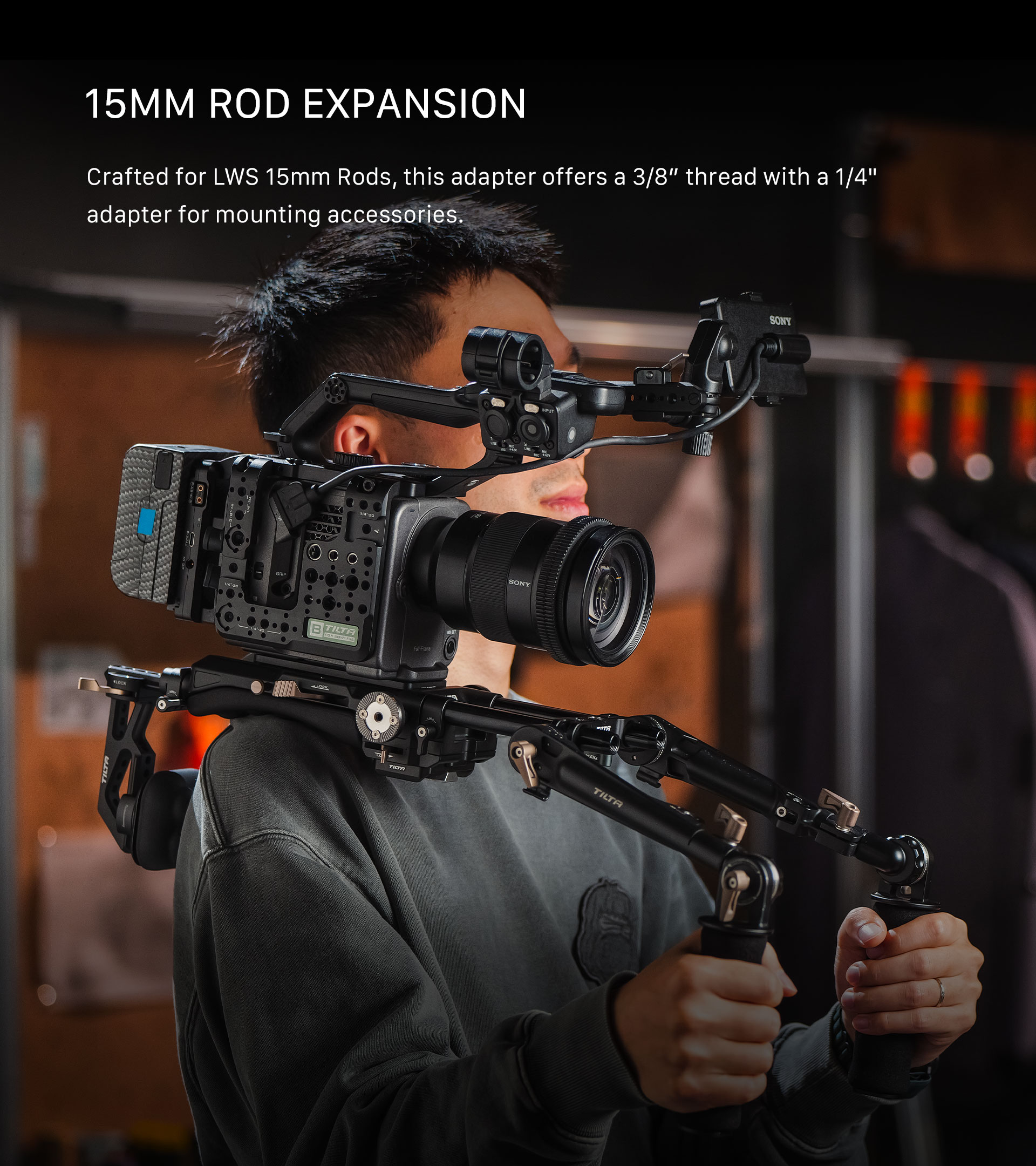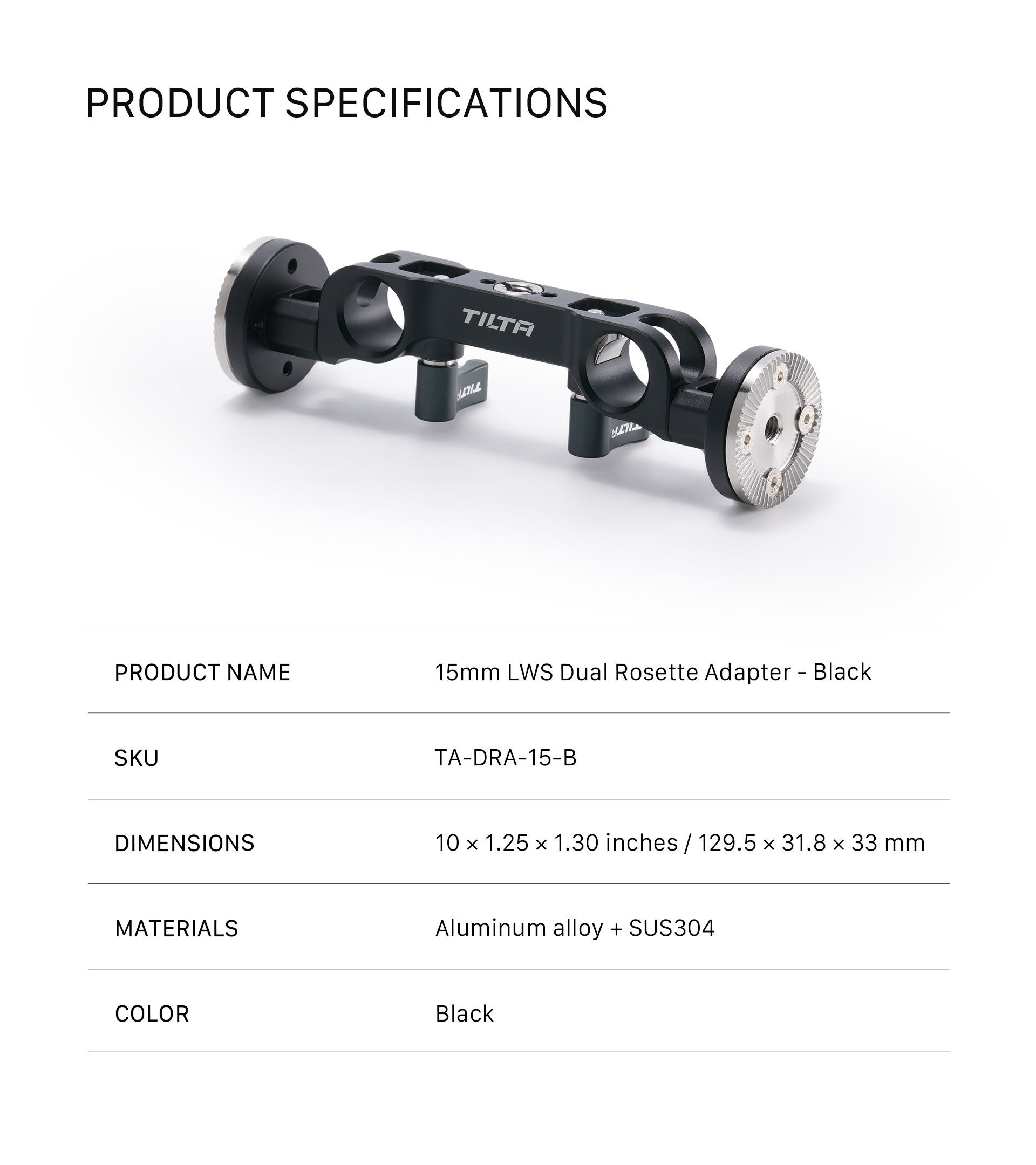 Presentamos el adaptador LWS Dual Rosette de 15 mm. Este adaptador tipo puente se monta mediante varillas LWS de 15 mm y permite a los usuarios acoplar accesorios mediante uniones de roseta.