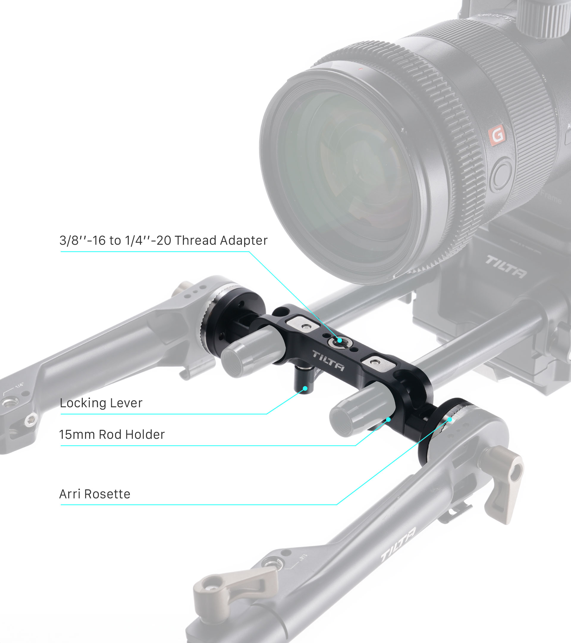 En el centro del soporte de la barra hay una rosca de 3/8″-16 con un adaptador de 1/4″-20, que admite una amplia gama de accesorios adicionales.
