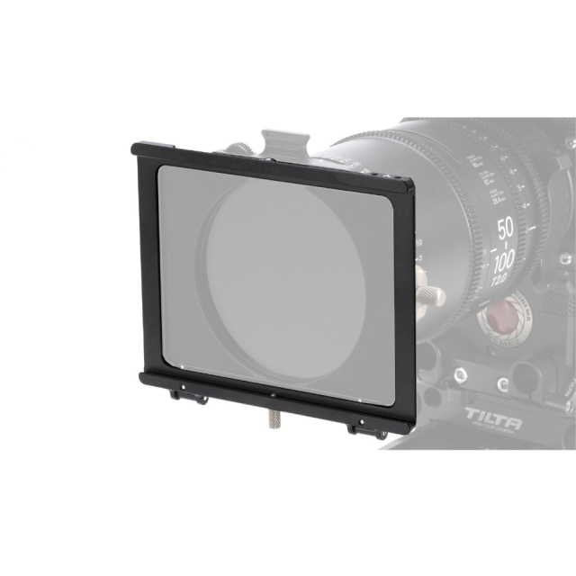 El soporte para bandejas de filtros apilables Tilta de 4 x 5,65" para la caja mate Mirage sustituye a la tapa de goma de la caja mate Tilta Mirage y permite fijar la bandeja de filtros apilable de 4×5,65 (no incluida) delante del objetivo.