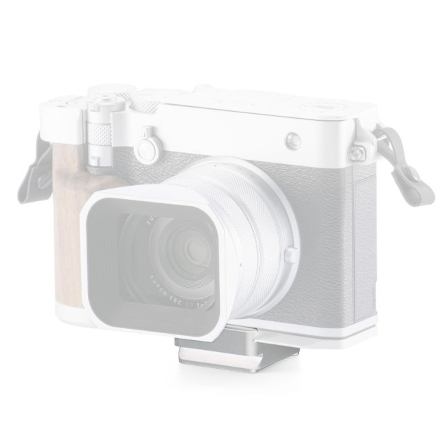 Esta placa de fijación rápida ARCA se puede acoplar directamente a la parte inferior de la base de montaje con empuñadura de madera para las jaulas vintage de Tilt, diseñadas para las cámaras Fujifilm GFX100RF, X100VI y Leica Q3.