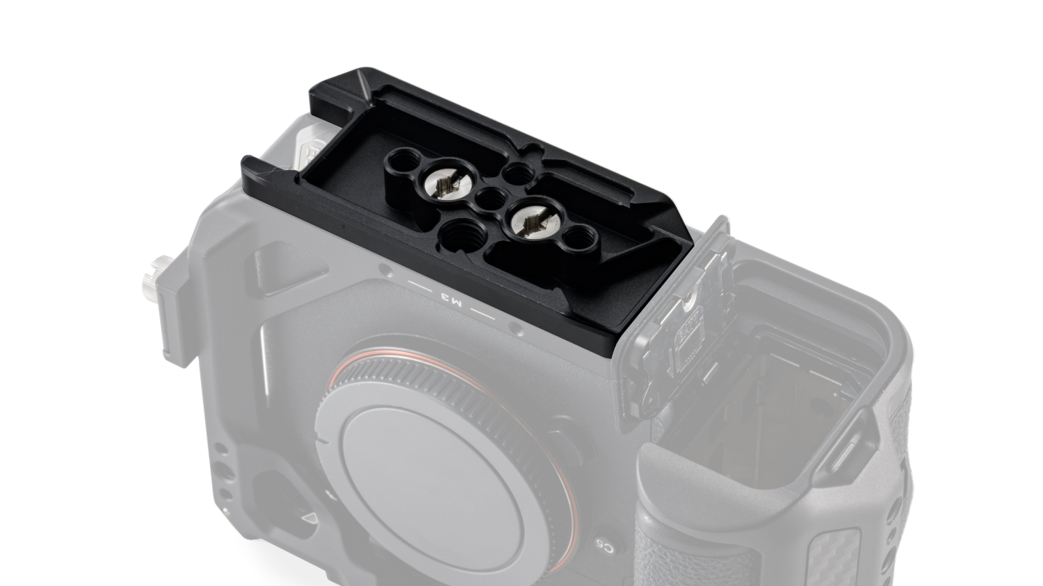 Esta placa ARCA de fijación rápida se puede acoplar directamente a la parte inferior de la jaula de la cámara Sony a1 II/a9 III.