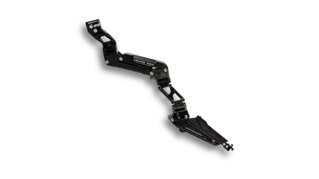 Brazo Armorman 3.0 (L) -- Este brazo izquierdo estabilizado Armorman 3.0 con amortiguador se fija a la parte trasera del chaleco Armorman 3.0 en el modo de trabajo habitual, y también se puede fijar a la parte superior del chaleco cuando se trabaja en configuración por encima de la cabeza. Una vez colocado, el brazo cuenta con dos botones ajustables para regular la tensión, lo que permite adaptarlo al peso del cardán o del equipo de cámara, así como al estilo de control preferido (si se desea tener los brazos inclinados alejados del cuerpo o pegados y compactos junto al cuerpo).