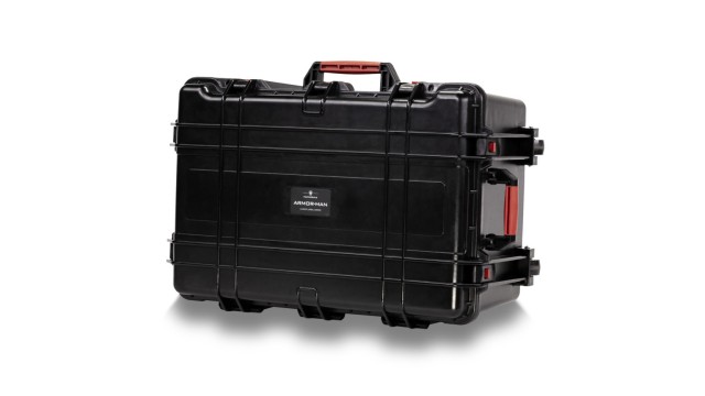 Maletín de seguridad impermeable Armorman 3.0. Protege y guarda tu Armor Man 3.0 en este maletín de viaje impermeable con ruedas. Los compartimentos de espuma a medida envuelven perfectamente tu chaleco y las dos hombreras estabilizadas y resistentes a los golpes dentro del maletín para ofrecer la máxima protección y portabilidad.