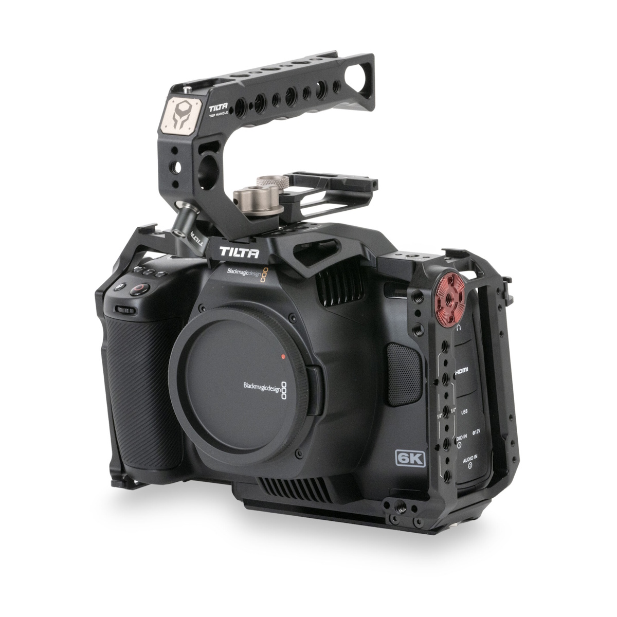 Equipa tu cámara con la jaula Tiltaing Camera Cage para las Blackmagic Pocket Cinema Camera 6K Pro y 6K G2. Este kit básico para la BMPCC6K Pro/G2 proporciona una protección para el cuerpo de la cámara e incluye algunos accesorios esenciales para mejorar su funcionalidad. La jaula completa ofrece varios roscados de 1/4"-20 con pasadores de posicionamiento, receptáculos para zapata fría, un riel NATO para empuñaduras laterales de tipo IV y VI, así como puertos para fijar varillas a nuestros soportes de una sola varilla. También está equipada con rosetas compatibles con ARRI, diseñadas específicamente para nuestra empuñadura superior ajustable Plus, lo que permite un control y una manipulación más flexibles. El módulo del brazo lateral derecho se puede extraer para convertir esta jaula Full Cage en una Half Cage. Esto ofrece mayor flexibilidad en situaciones en las que se requiere una estructura más ligera, como al utilizar un gimbal. La placa inferior ofrece varios puntos de montaje de ¼"-20 para fijar la cámara a diversas placas de liberación rápida y es compatible con el receptor ARCA de la placa de montaje RS2.