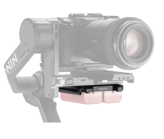 La batería doble Tilta TGA-PPP-LS permite alimentar el estabilizador DJI RS 4 mediante dos baterías Sony de la serie L. Esta batería doble inalámbrica, diseñada para utilizarse con la placa Pass-Through Power Plate necesaria, reduce el centro de gravedad del estabilizador, mejorando así su equilibrio y estabilidad. Es ideal para configuraciones profesionales, incluidos los sistemas Tilta Hydra Alien y Float.