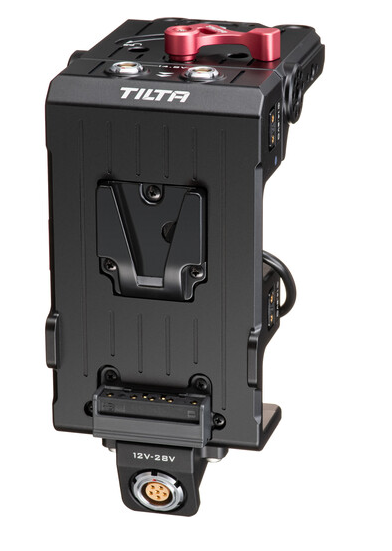 El ES-T18-BTP3-V, diseñado específicamente para el sistema de jaula Tilta FX9, sustituye la placa estándar de la cámara por una solución V-Mount limpia y totalmente integrada que se adapta perfectamente a la parte trasera de la FX9. Una batería V-Mount de 98-190 Wh alimenta todo el dispositivo a través de una amplia gama de salidas reguladas: tres puertos D-Tap de 14,8 V, dos salidas LEMO de 2 pines de 14,8 V, un puerto USB-A de 5 V y una entrada LEMO de 6 pines (12-28 V), que admite adaptadores de corriente o baterías de bloque para una alimentación ininterrumpida. El cable corto integrado mantiene el cableado ordenado y la estructura de aluminio CNC mantiene el peso en unos razonables 900 g.