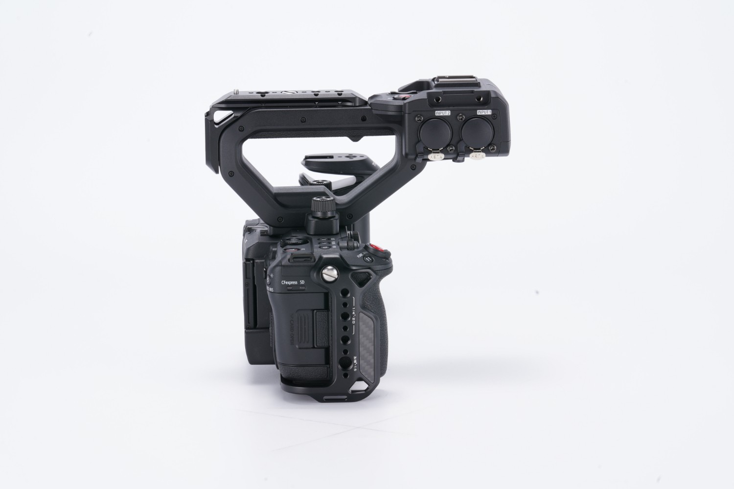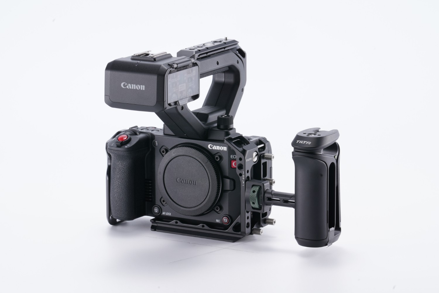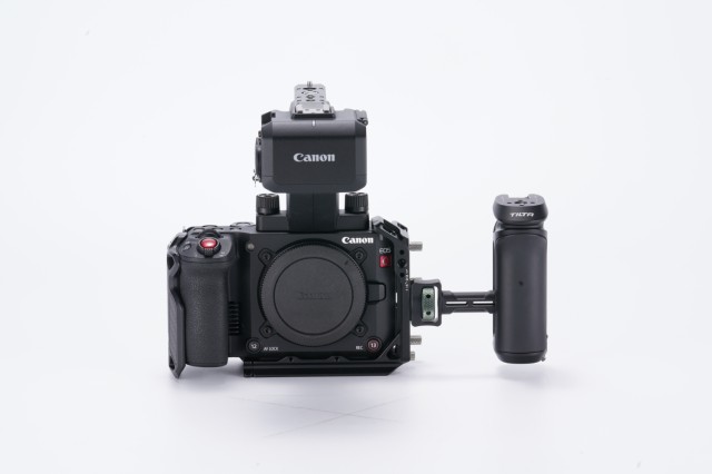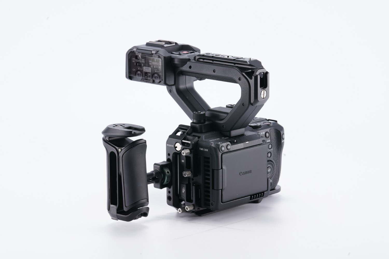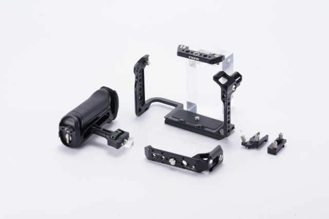 La pieza central de este kit de Tilty es una jaula (full camera cage) diseñada para proporcionar una protección adicional al cuerpo de la cámara Canon C50 y permitir a los usuarios ampliarla con diversos accesorios específicos para vídeo.