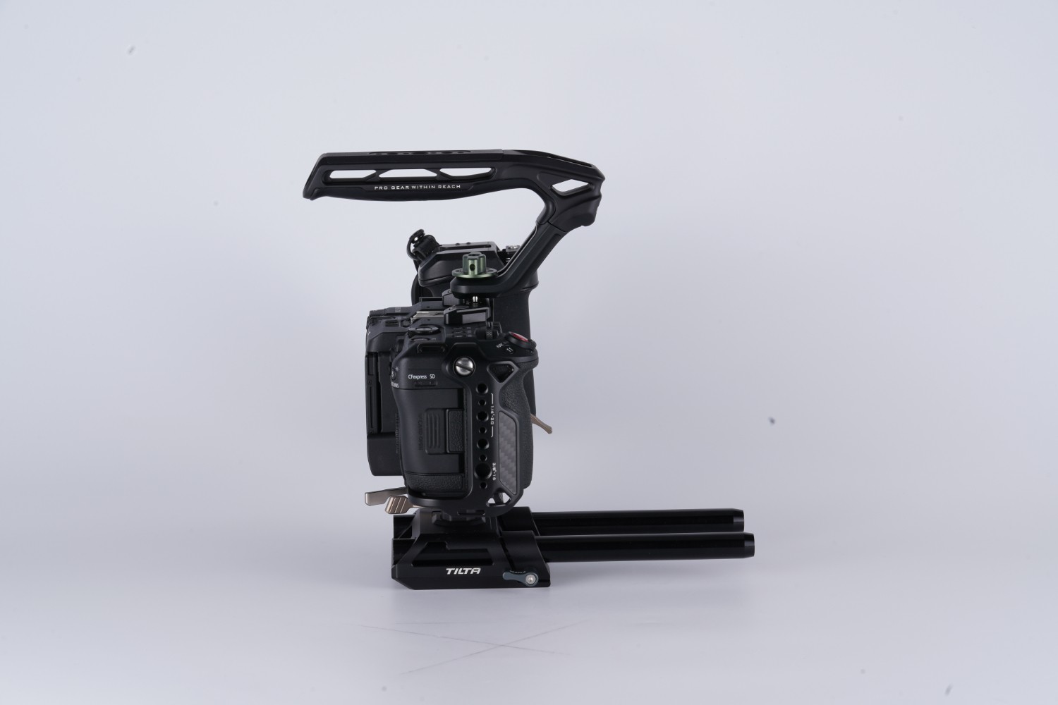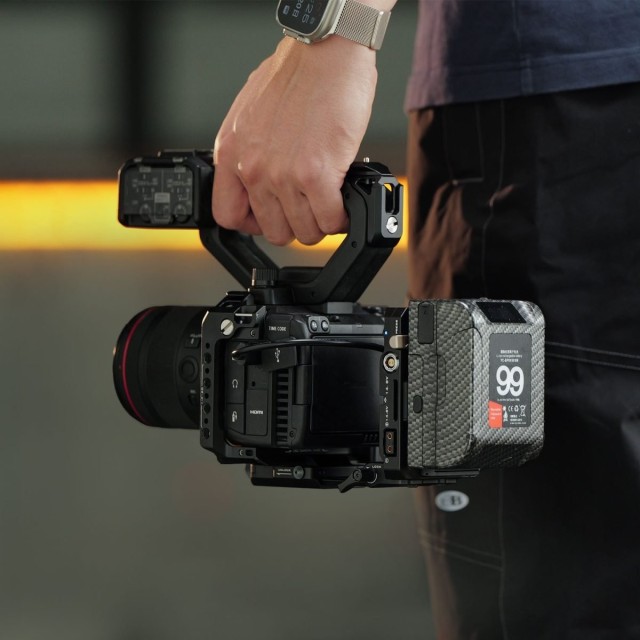 La jaula cuenta con una placa superior extraíble que es compatible con la empuñadura superior original Canon XLR, lo que mejora la ergonomía de manejo. La placa superior también está equipada con orificios roscados de 1/4”-20 y M4, que ofrecen opciones flexibles para fijar accesorios o brazos articulados.
