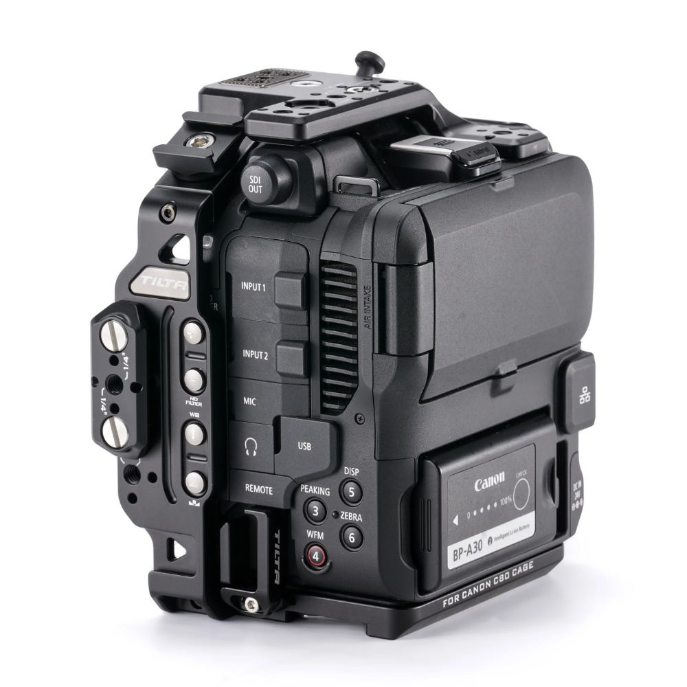 Esta carcasa ofrece una protección adicional para el cuerpo de la cámara Canon C80 y, al mismo tiempo, amplía las posibilidades de acoplar diversos accesorios.