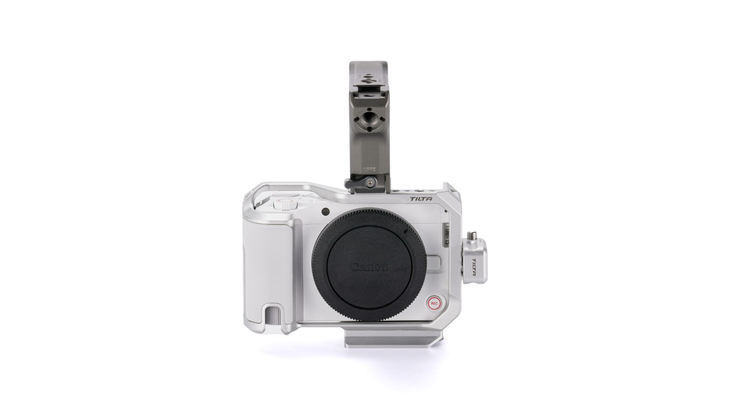 El asa superior también amplía las opciones de fijación con roscas adicionales de 1/4"-20 y un raíl, ideales para un monitor externo.