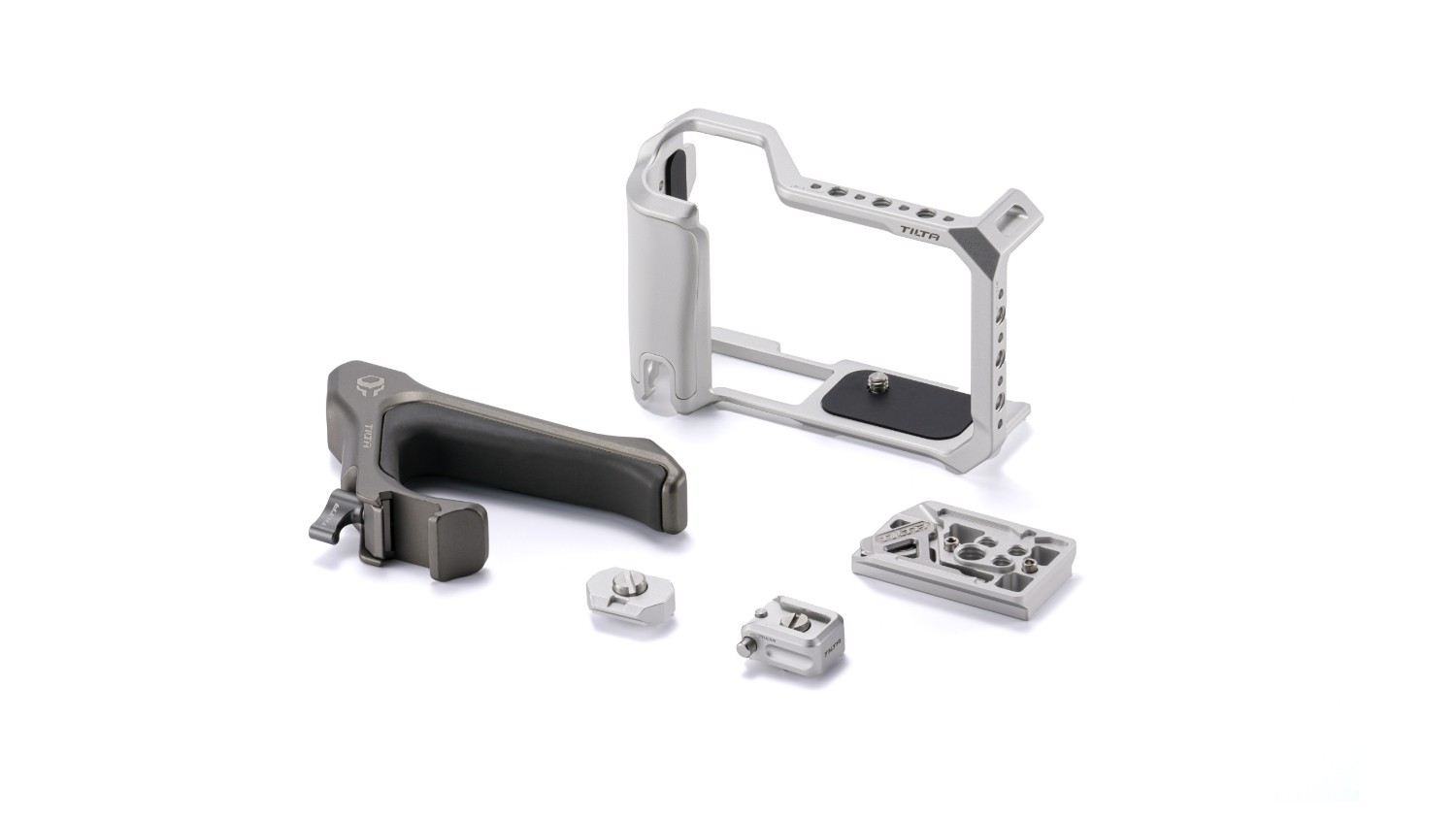Esta jaula presenta un nuevo diseño que permite retirar los tres puntos de fijación principales cuando no los necesites, ya que la barra NATO, los rieles y la placa ARCA son todos desmontables.