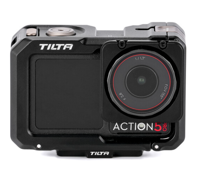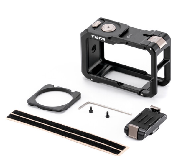 El kit completo de jaula para cámara Tilta TA-T72-A-B convierte la DJI Osmo Action 5 Pro/4/3 en una herramienta profesional totalmente equipada, sin perder las ventajas de su diseño compacto. La jaula, con un diseño que se ajusta a la perfección, envuelve de forma segura la cámara en un marco de aleación de magnesio y aluminio de alta resistencia con almohadillas de silicona integradas que amortiguan los golpes, lo que garantiza resistencia a los impactos y a las vibraciones. El diseño de doble cara con liberación rápida permite cambiar la batería al instante y un montaje sencillo, mientras que el puerto de carga, el micrófono y el botón de grabación quedan totalmente accesibles. La base magnética de liberación rápida incluida se fija a la parte inferior o lateral de la jaula y ofrece una rosca antideslizante de 1/4"-20 para trípodes, gimbals o brazos mágicos, además de un receptor de zapata fría y otras roscas de 1/4"-20 para accesorios.