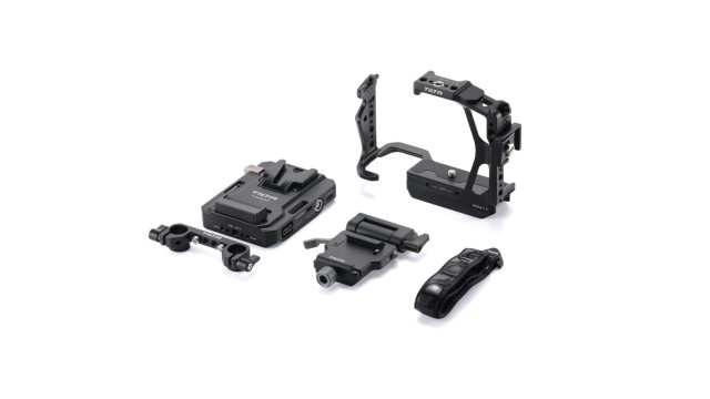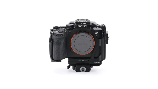 Este kit de jaula para cámara, con un diseño deslizante ajustable, permite un ajuste preciso de la posición para una fijación segura en varios cuerpos de cámara. Ofrece roscas de montaje de 1/4”-20 y 3/8”-16 con puntos de posicionamiento, así como una zapata para accesorios de tipo «cold shoe». La jaula es compatible con las Sony α7V, α7IV y α7R V.